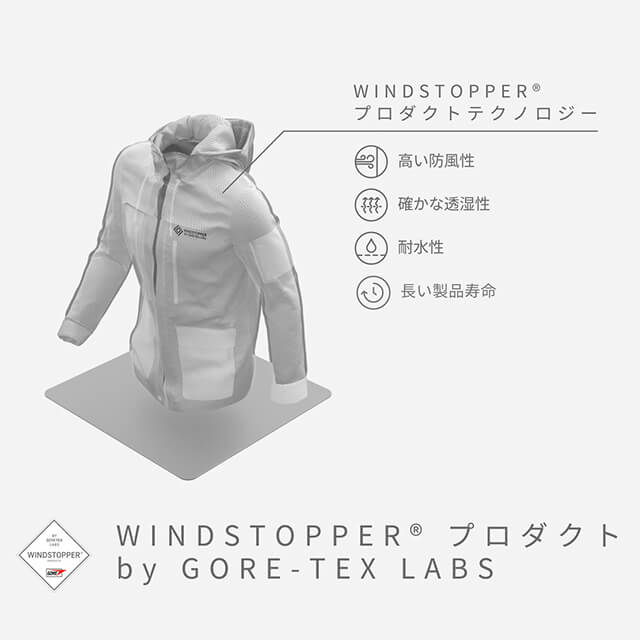 WINDSTOPPER® by GORE-TEX LABSは、高い防風性、確かな透湿性、耐水性を備え、長い製品寿命を保ちながら保護と快適性を提供します。風の強い日、寒い日、にわか雨の時にも活躍します。
